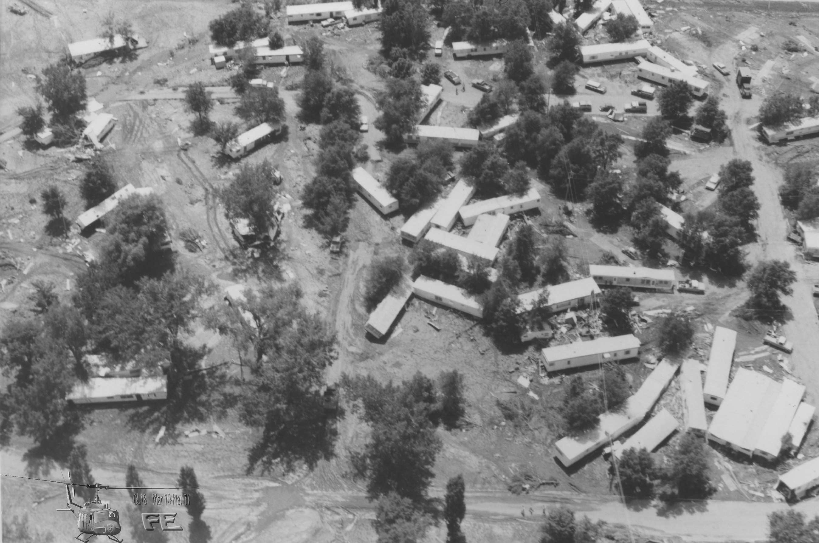 This mobile home park was destroyed. Location unknown, but probably in the vicinity of the Fairgrounds. Trailer parks are especially vulnerable to floods.