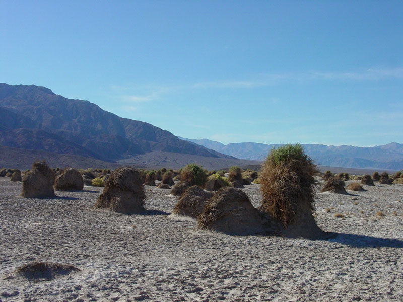 This view is looking west from the Devil's Cornfield on Highway 190 toward Tucki Mountain and the alluvial fan at the mouth of Grotto Canyon. The Cottonwood Mountains of the Panamint Range are in the distance.