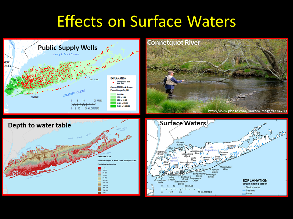 Nearly all of the water flowing in streams on Long Island is derived from groundwater; therefore, any changes in the the amount of groundwater discharging to streams can have large effects on the amount of water in the streams.