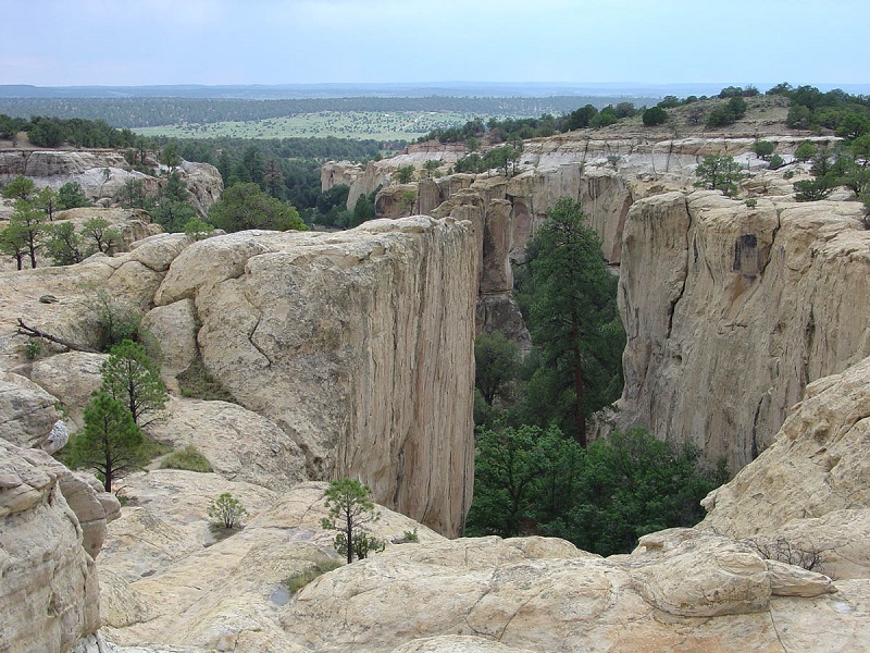 View of a canyon in the Zuni Sandstone from along the Headland Trail on top of Inscription Rock in El Morro National Monument.
