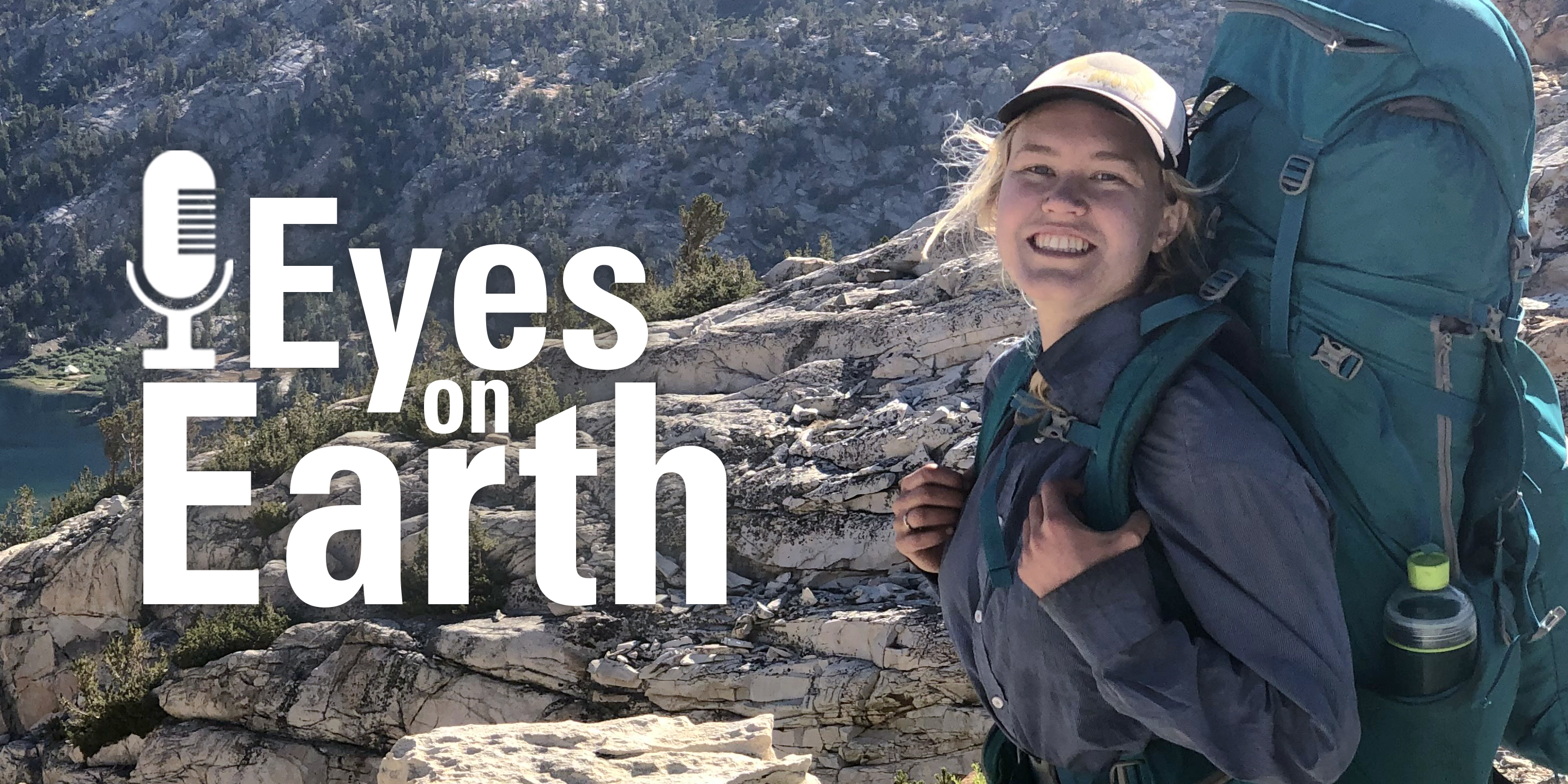 Savannah Cooley with the logo for the USGS EROS podcast "Eyes on Earth."
