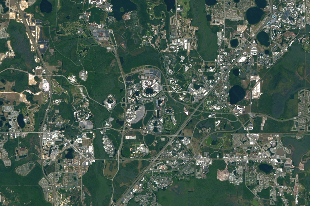 Pan-sharpened Landsat 8 image of Disney's Epcot Center in Florida.
