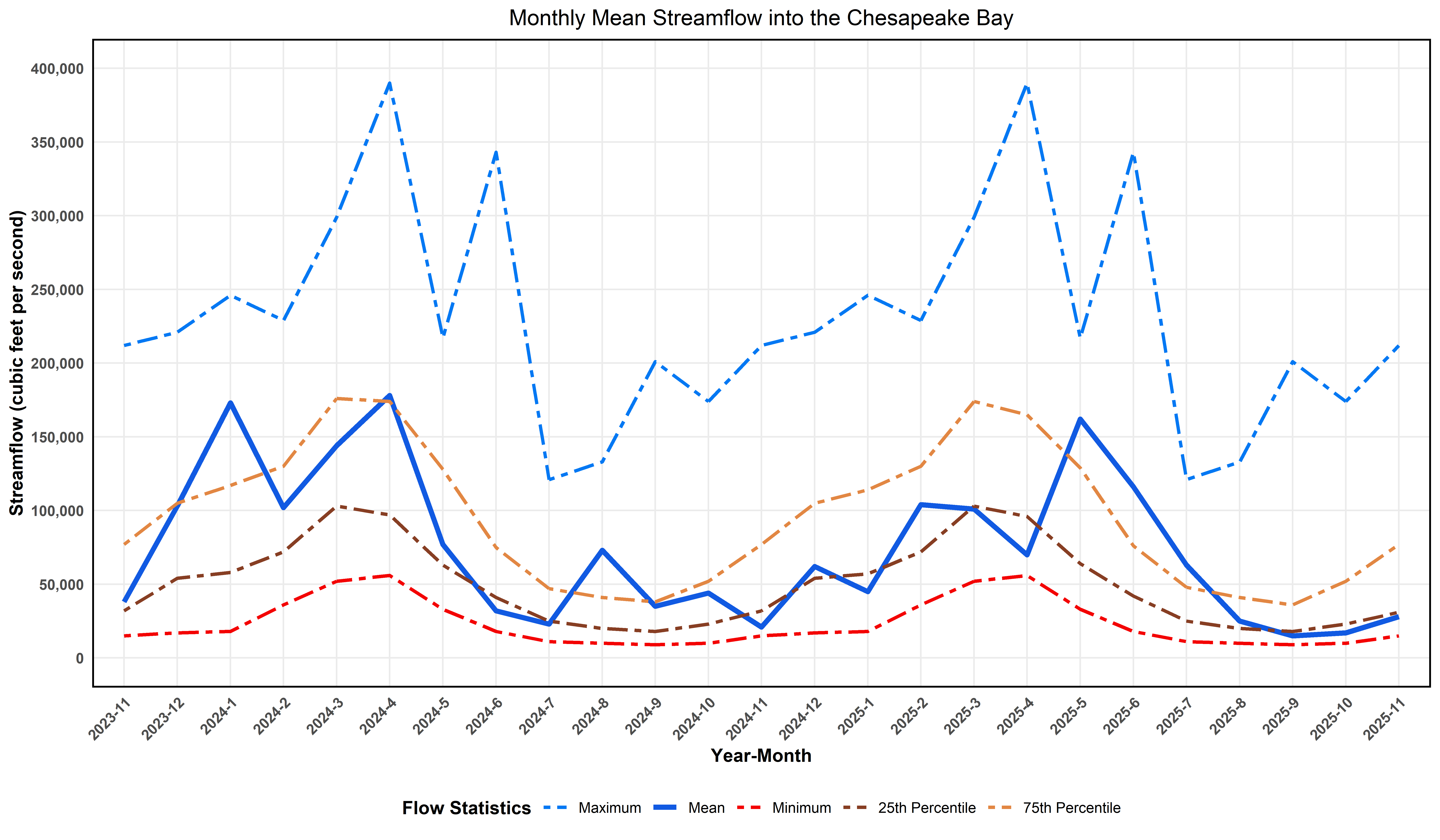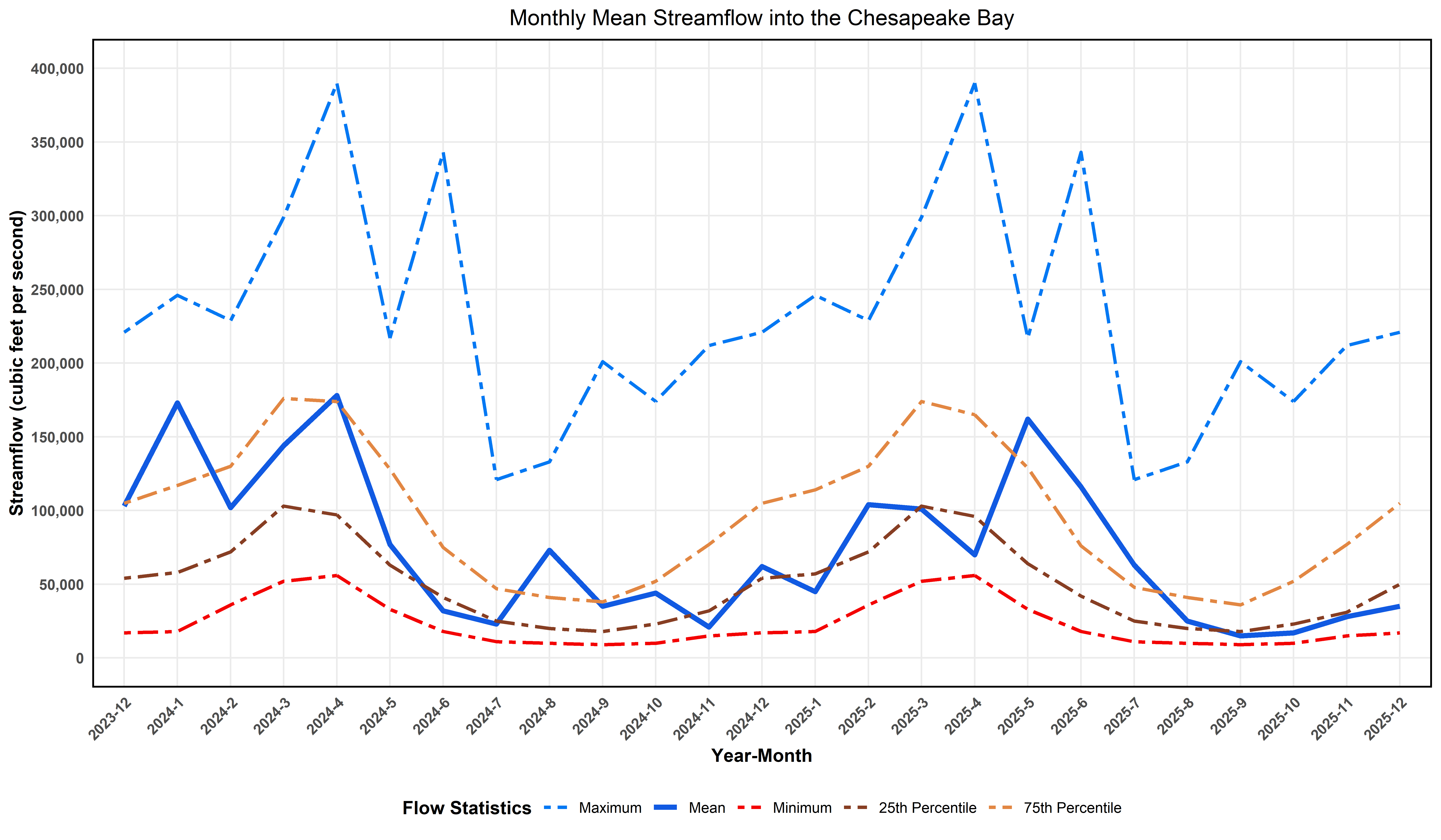 A figure showing estimated monthly mean streamflow entering Chesapeake Bay.