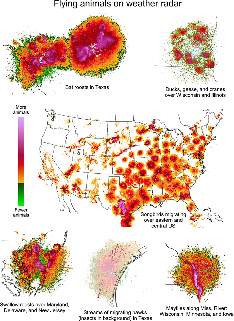 Examples of what flying animals look like on weather radar.