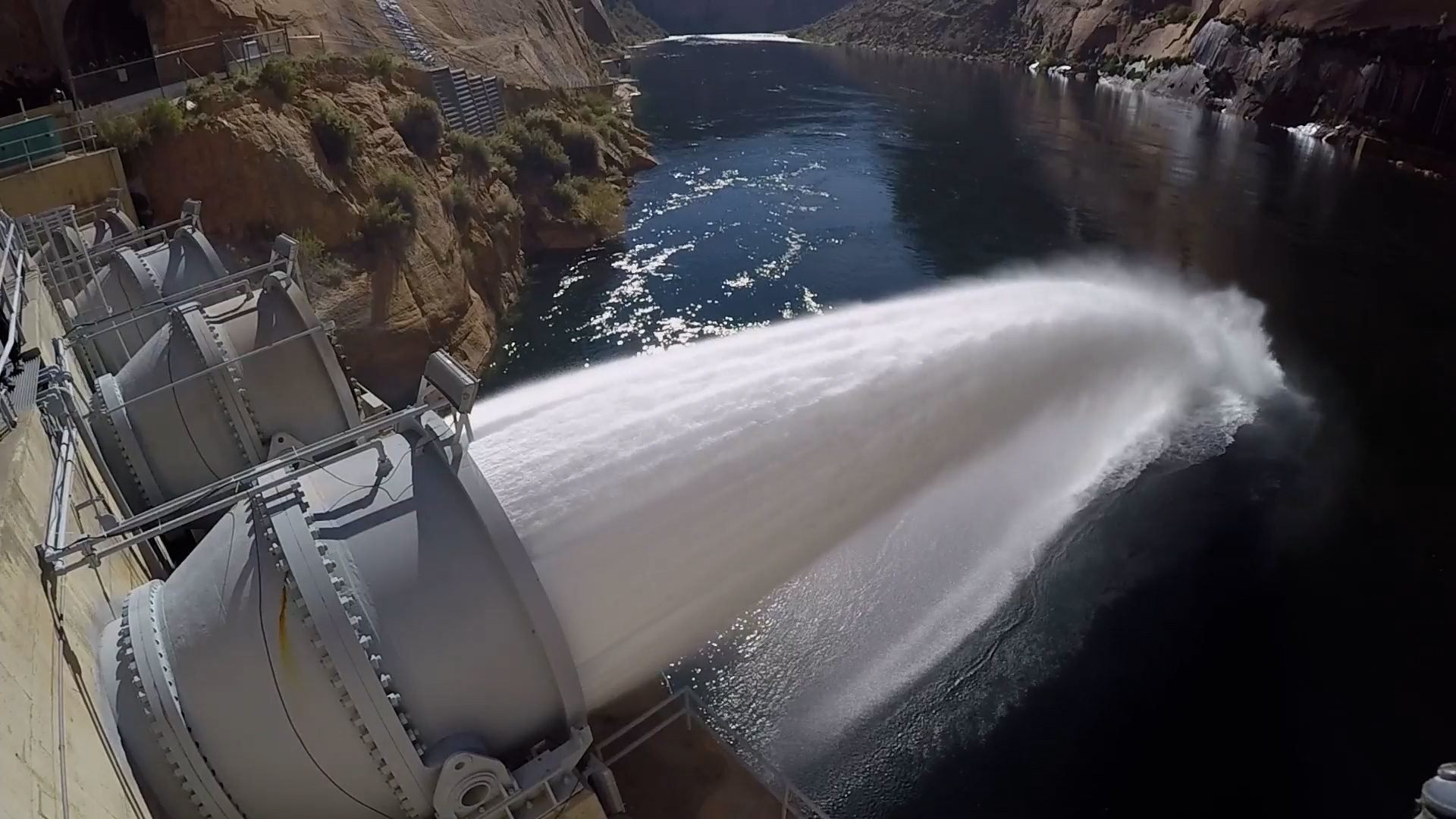 Water released from the bypass jet tubes from the Glen Canyon Dam.