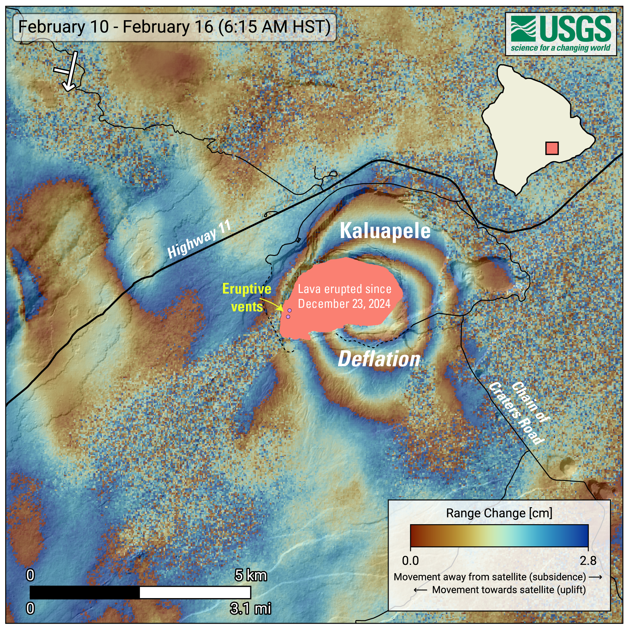 February 16, 2026—InSAR image of Kīlauea deformation associated with episode 42 of ongoing summit eruption