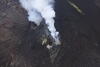 Despite hazy conditions on Thursday, February 26, the USGS Hawaiian Volcano Observatory monitoring overflight crew had clear views of the Kīlauea summit eruptive vents during a low pass over western Halema‘uma‘u crater. No lava or incandescence was visible in either the north (lower-right) or south (upper-left) vent. USGS photo by M. Zoeller.