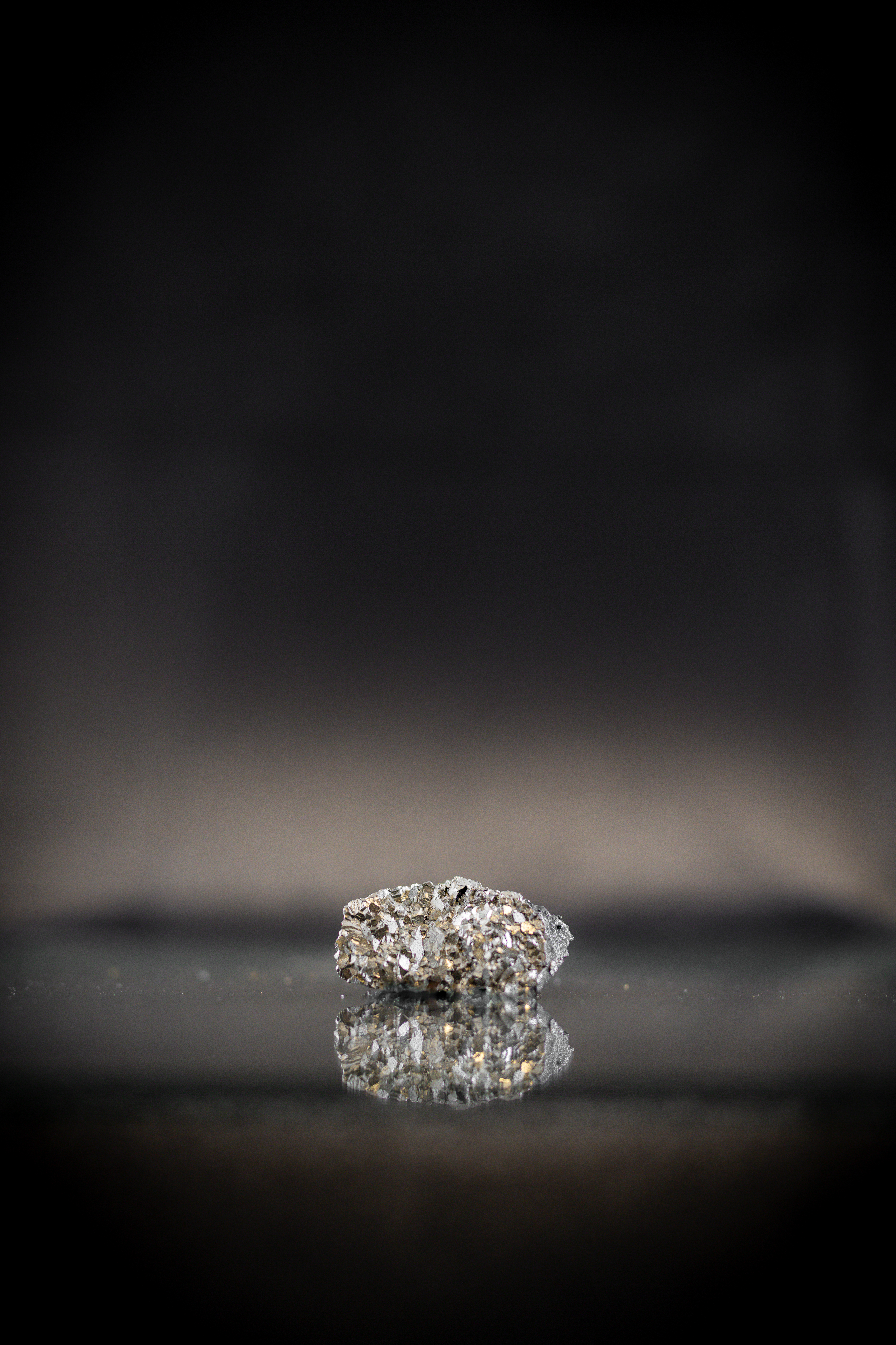 Isolated ferrochromium specimen from the USGS mineral collection. High-definition image showing metallic texture and silvery color.