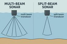 Figure 1. Diagram showing basic difference between multi-beam and split beam sonar transducers.