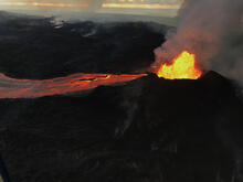 Fissure 8 continues to produce fountains and channelized lava flows