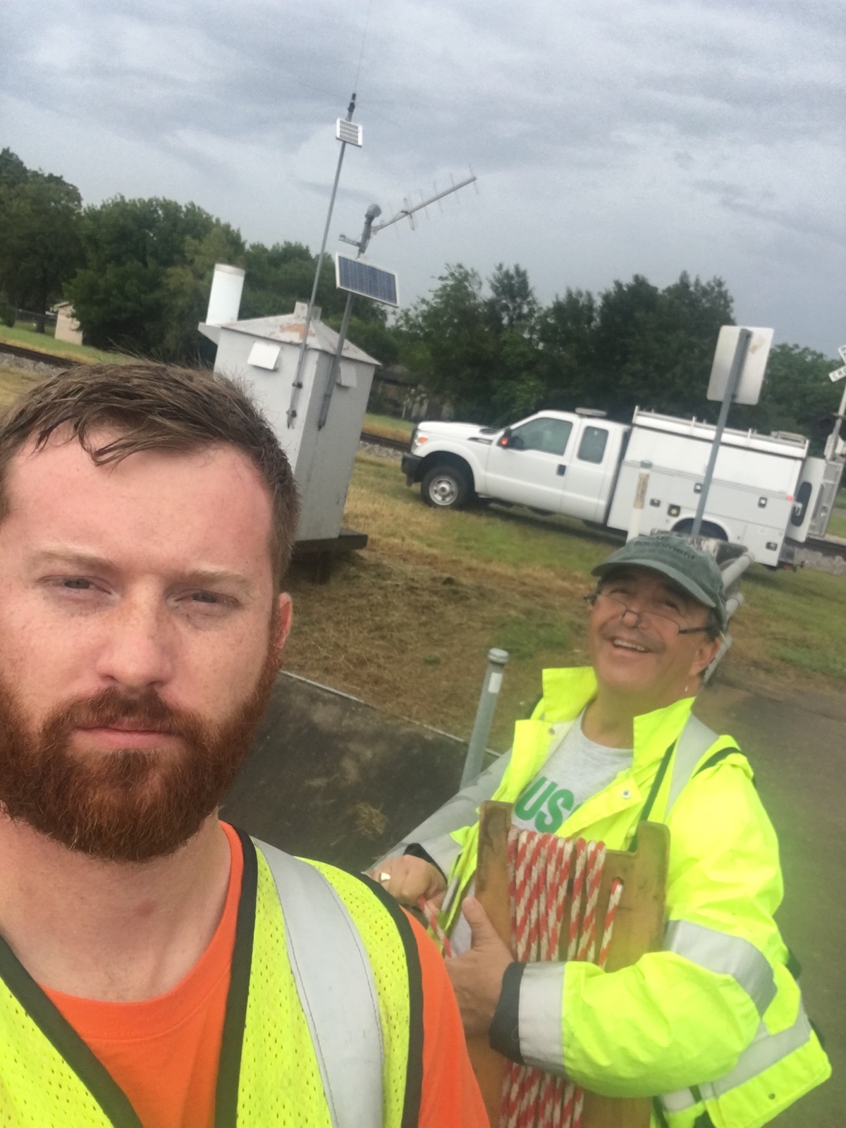 USGS scientists Mackenzie Mullins and Al Campodonico take flood measurements at Berry Bayou in Houston, Texas.