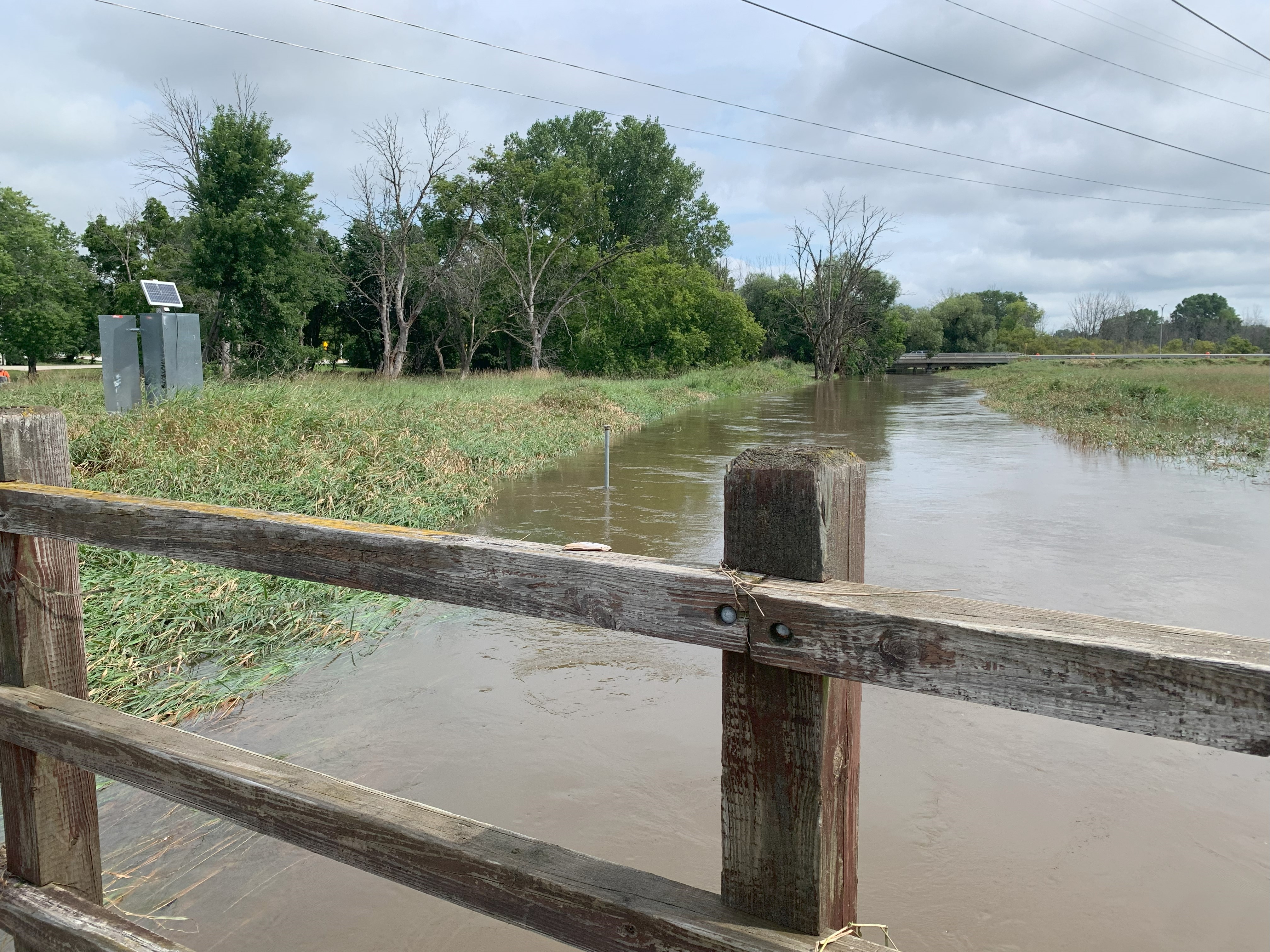 Flooded Little Menomonee River at streamgage 04087070