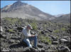 Geologist maps the surficial extent of debris flows on the north flank of Mount St. Helens. The view is to the south, with the Dogs Head lava dome in the background.