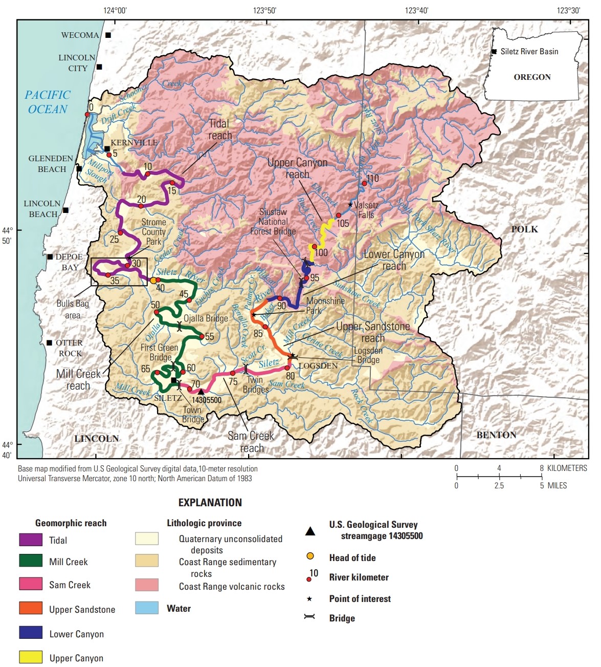 Geomorphic reaches studied by USGS, Siletz River, Western Oregon