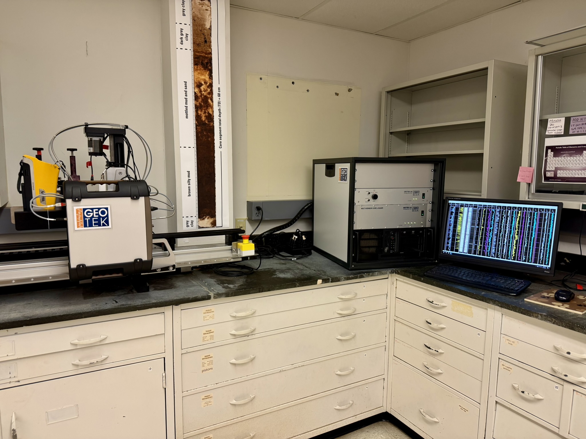 The GeoTek MSCL-XZ multi-sensor core logger (MSCL) housed in the BASCORE Lab is equipped with instrumentation for magnetic susceptibility, X-ray fluorescence (XRF), and color spectrophotometry.