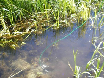 GPS location, length along cable, water depth, and a picture were taken at all staked locations. (Photo courtesy of Dan Leemon, Teton Conservation District)