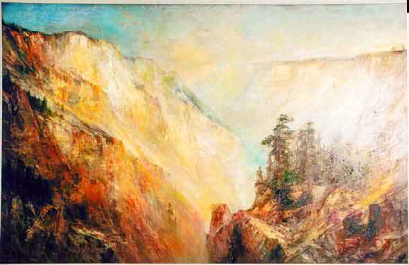 This large (74" X 114.5") oil painting was done by Lucien W. Powell and is on loan to the Geological Survey from the Smithsonian National Museum of American Art. The title of the painting is The Grand Canyon of the Yellowstone.