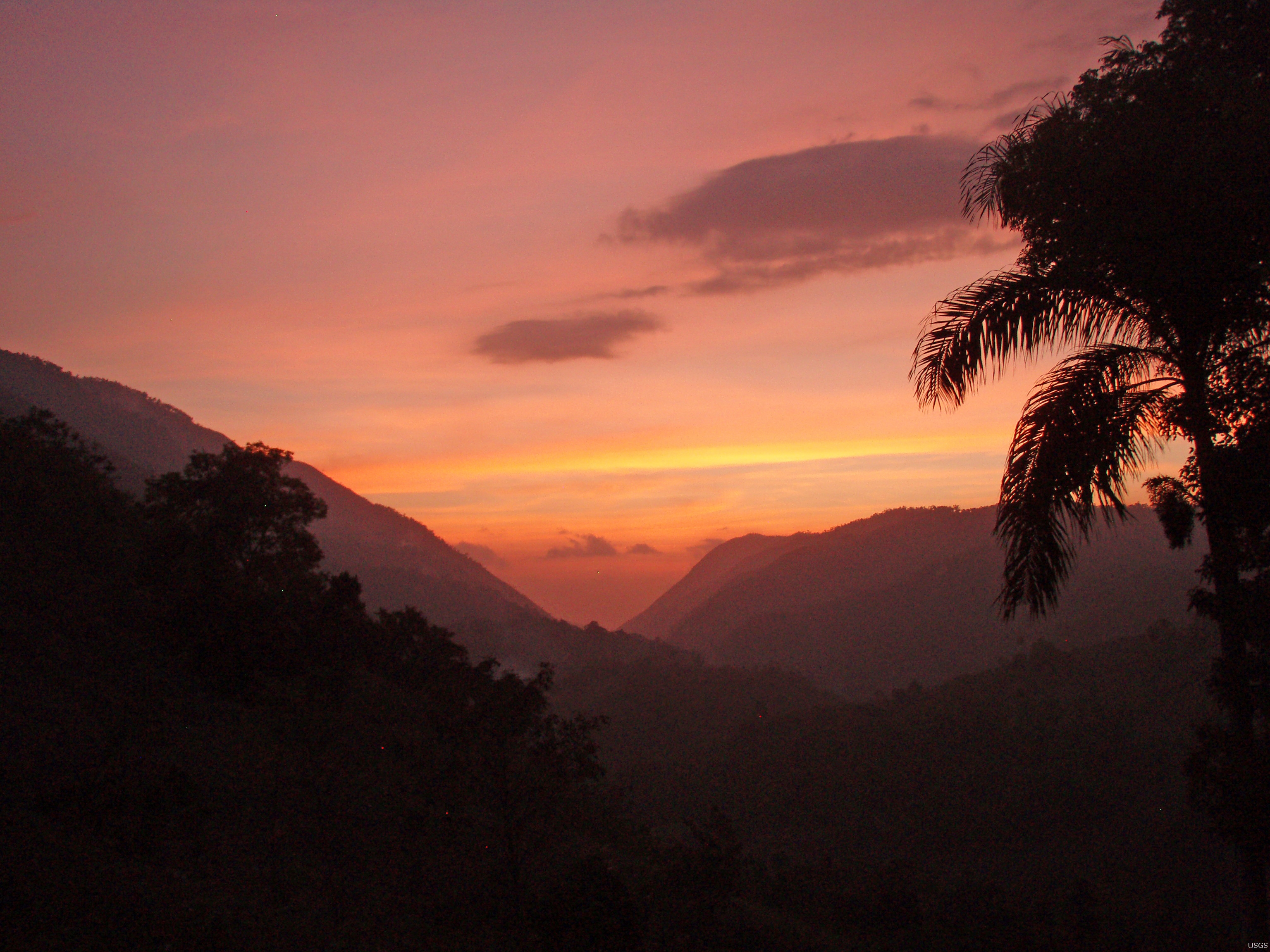 Sunset looking west down the valley of the Riviere Momance in southwest Haiti. Peacefulness of the sunset contrasts with the widespread destruction and fatalities caused by the January 2010 earthquake.