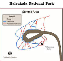 Informal (visitor-created) trails are common in popular park destination areas, such as the Haleakala Volcano summit.