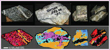 Hand specimen photograph (top) and mineral classification map (bottom) from Corescan data for selected hand specimens collected at the Orange Hill deposit. Data collected at 500-micron spatial resolution. Credit: USGS