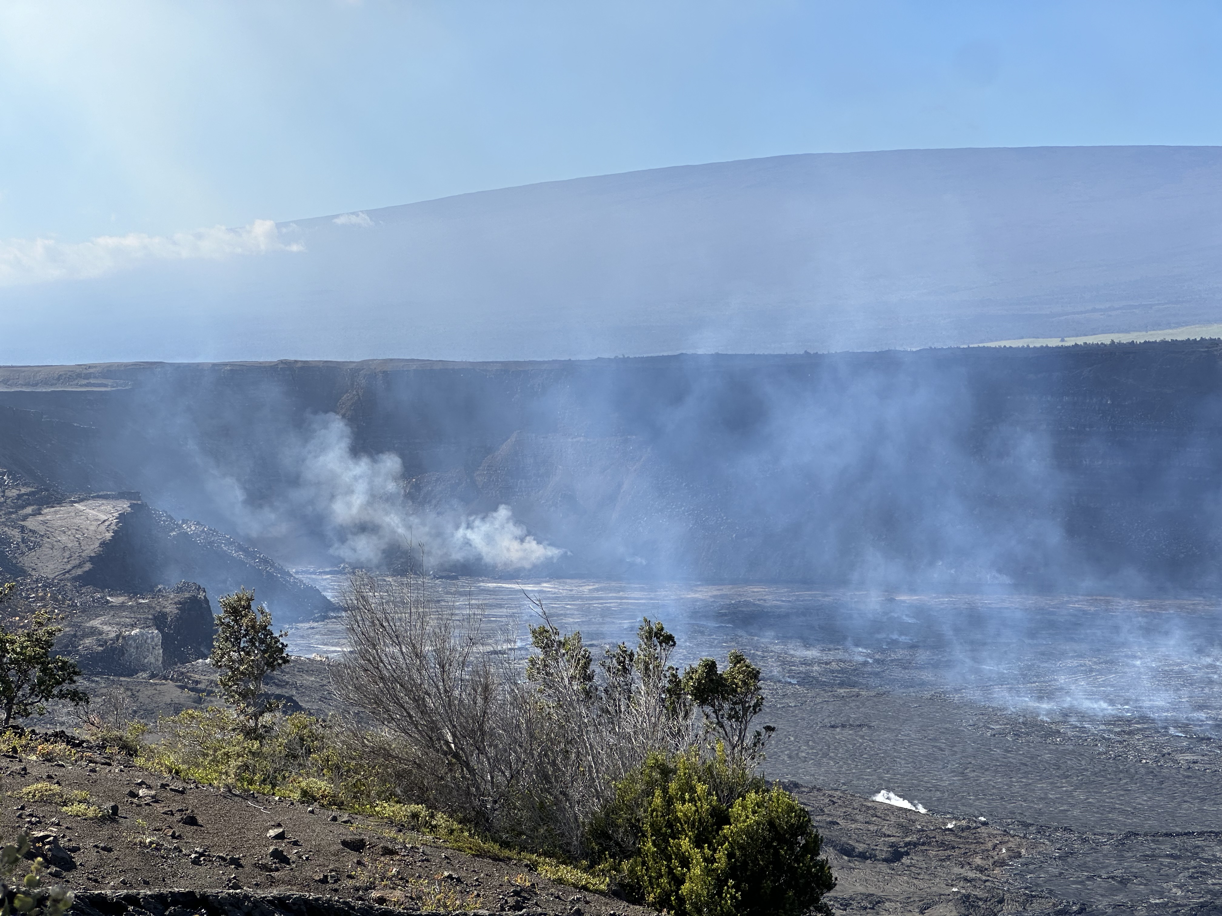 Hazy conditions caused by sulfur dioxide (SO2) emissions from Halema‘uma‘u crater, Kīlauea, Hawai‘i. USGS photo by Jennifer Lewicki, December 25, 2024.