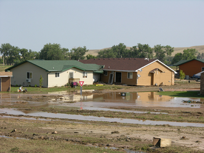 Several homes in the Hermosa area were moved from their foundations during the August 17, 2007, flood. (U.S. Geological Survey photograph)