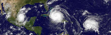 Hurricanes Katia, Irma and Jose. NASA photo.