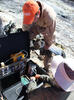 An HVO field engineer and gas geochemist check the wire and tubing connections i