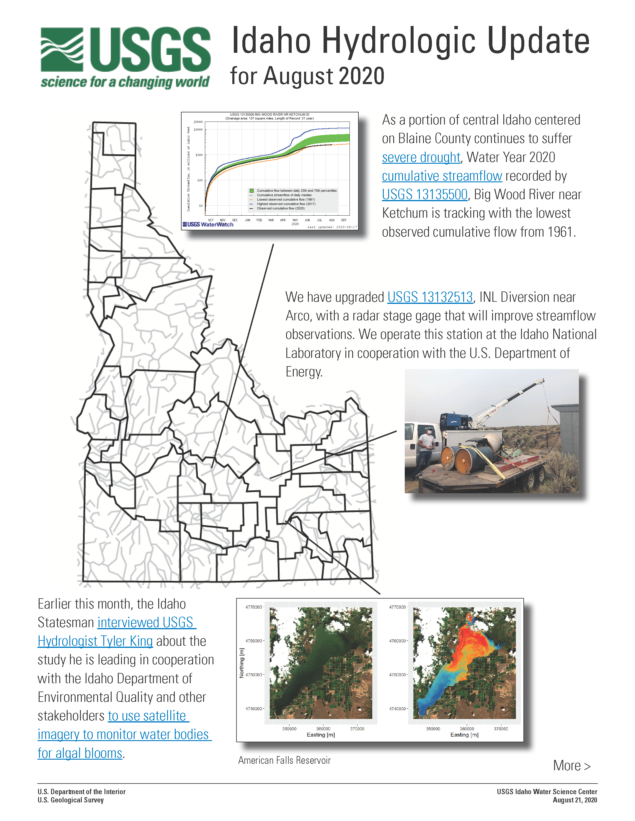 Thumbnail image of the August 2020 issue of the Idaho Hydrologic Update newsletter from the USGS Idaho Water Science Center