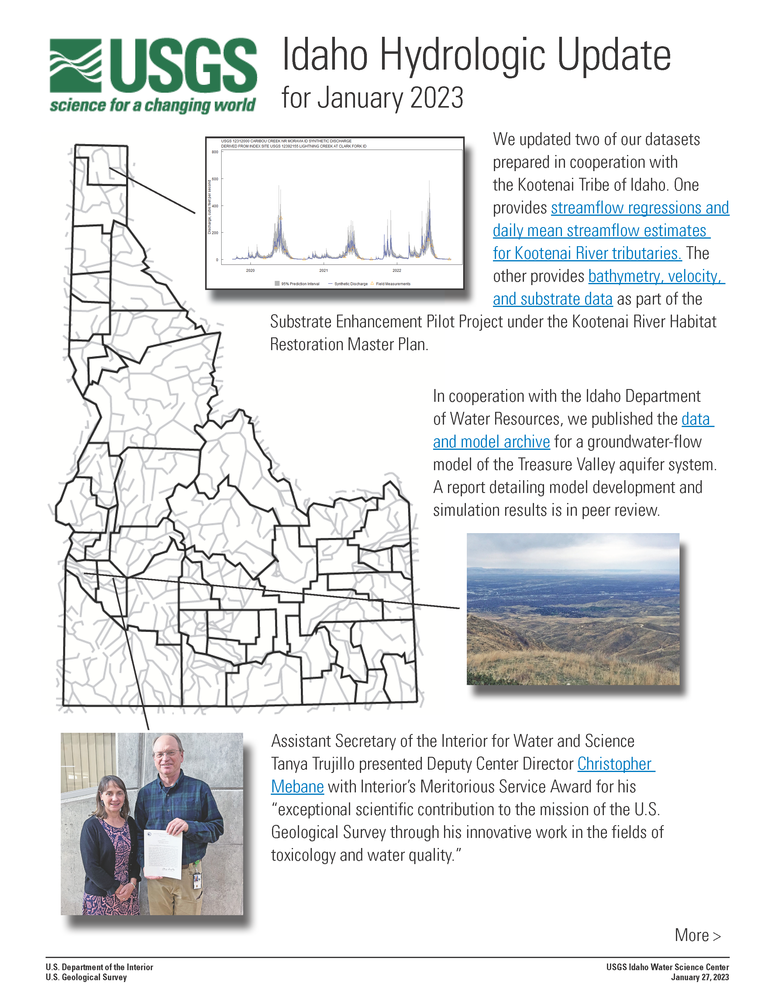 Image showing the first page of the January 2023 issue of the Idaho Hydrologic Update, the newsletter of the USGS Idaho Water Science Center