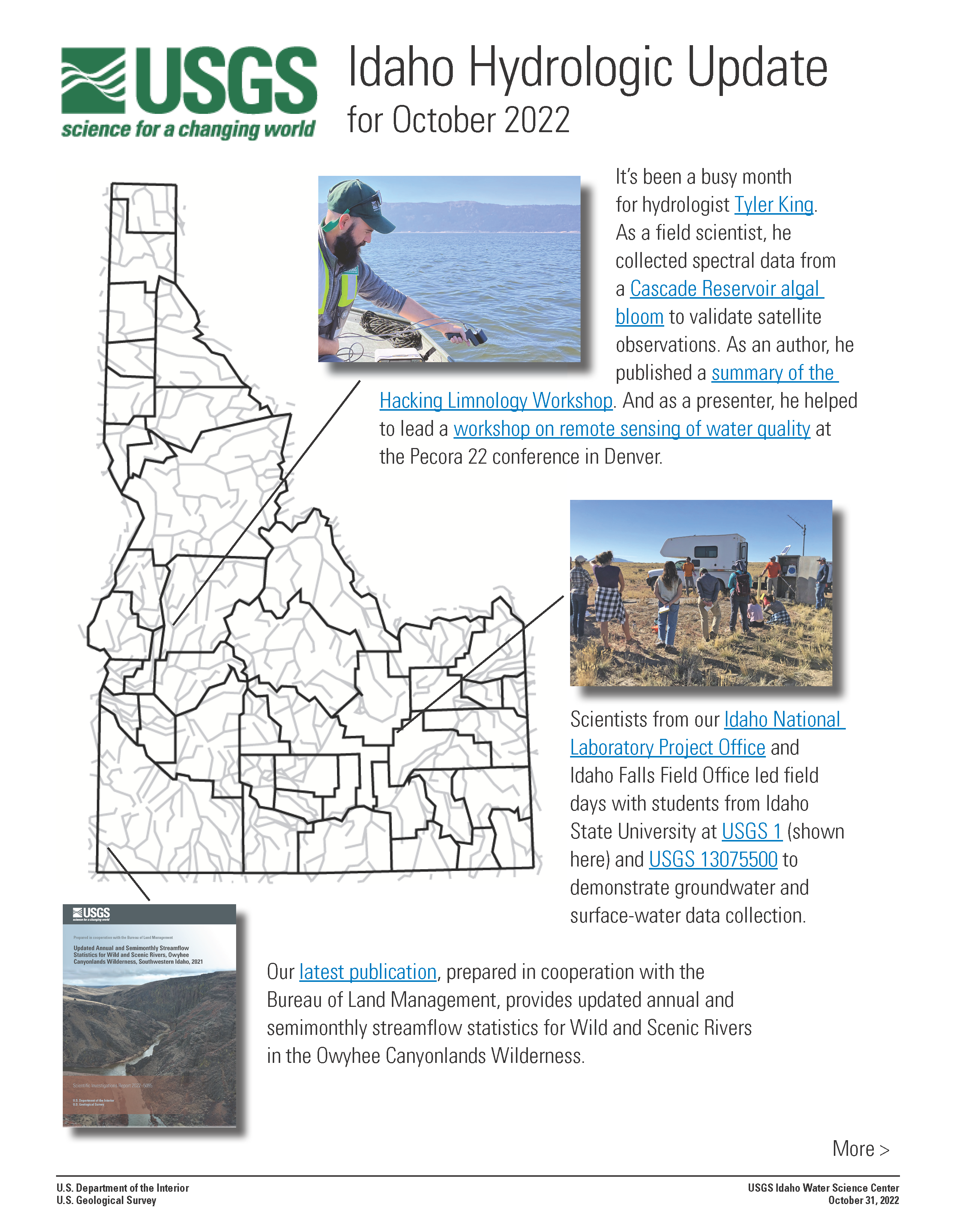 Image showing the first page of the October 2022 issue of the Idaho Hydrologic Update, the newsletter of the USGS Idaho Water Science Center