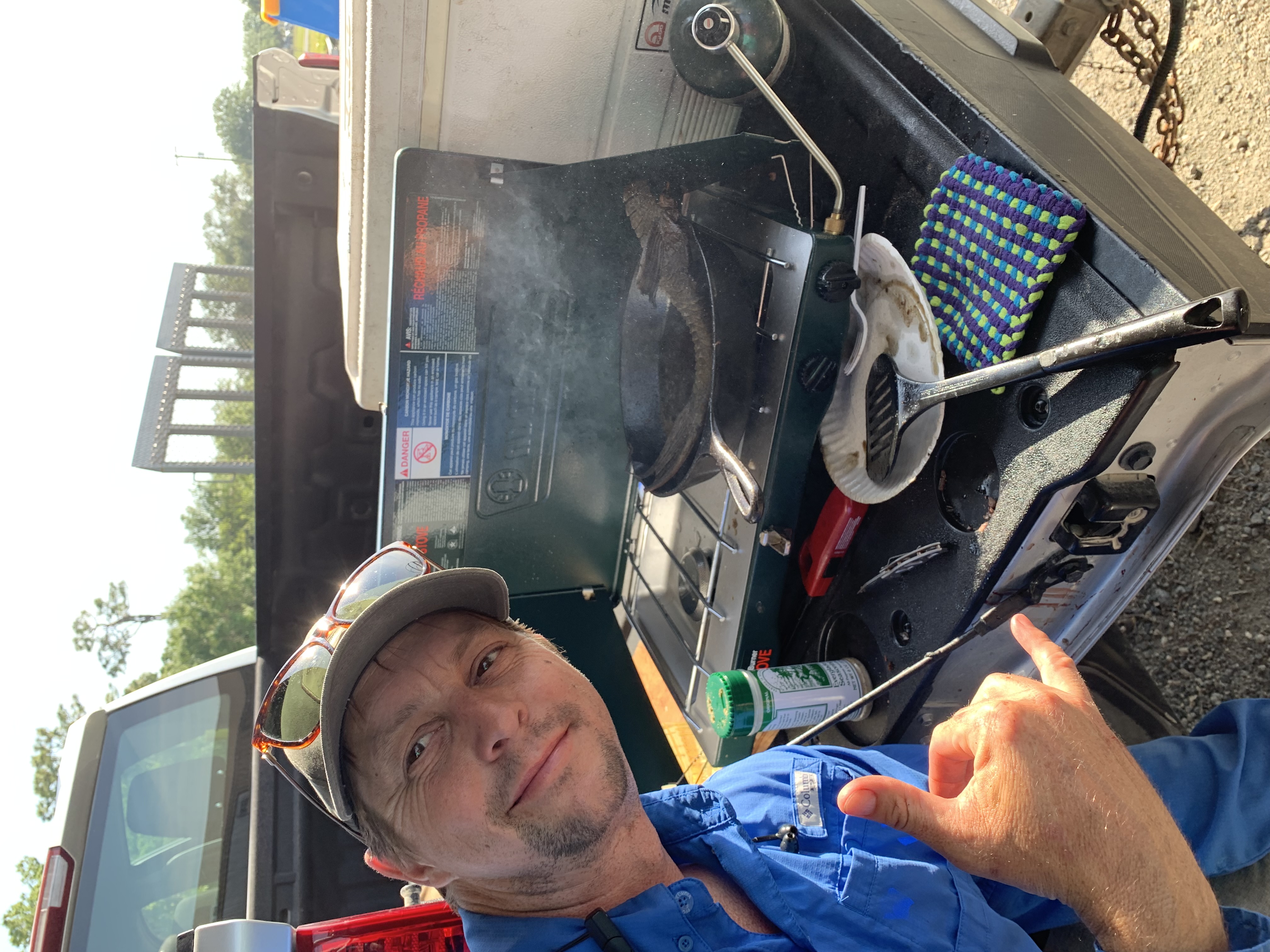 Art Bernhardt (FWC) cooking up some nonnative catch (photo credit Rob Robins, FM)