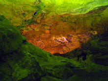 View of the entrance passage to Jewel Cave where tour groups enter the cavern from an elevator. The Jewel Cave Visitor Center is at the top of the elevator shaft.