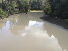View of the Kalama River looking upstream just above the Interstate-5 bridge near Camp Kalama (Washington). Image courtesy of Steve West, WDFW Area Habitat Biologist.