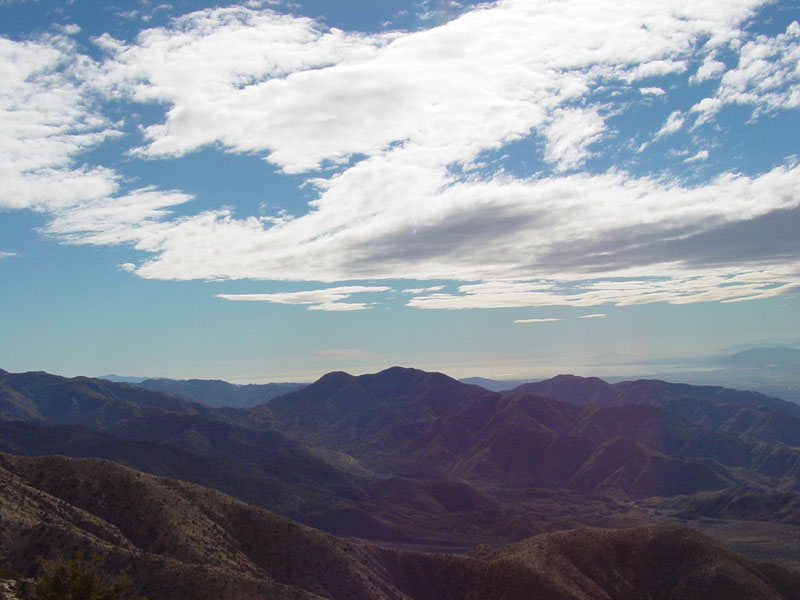 This zoomed-in view looking south from Keys View toward the southern Little San Bernardino Mountains. The Salton Sea is in the distance.