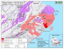 Kīlauea East Rift Zone lava flows and fissures, July 12, 3:00 p.m. HST
