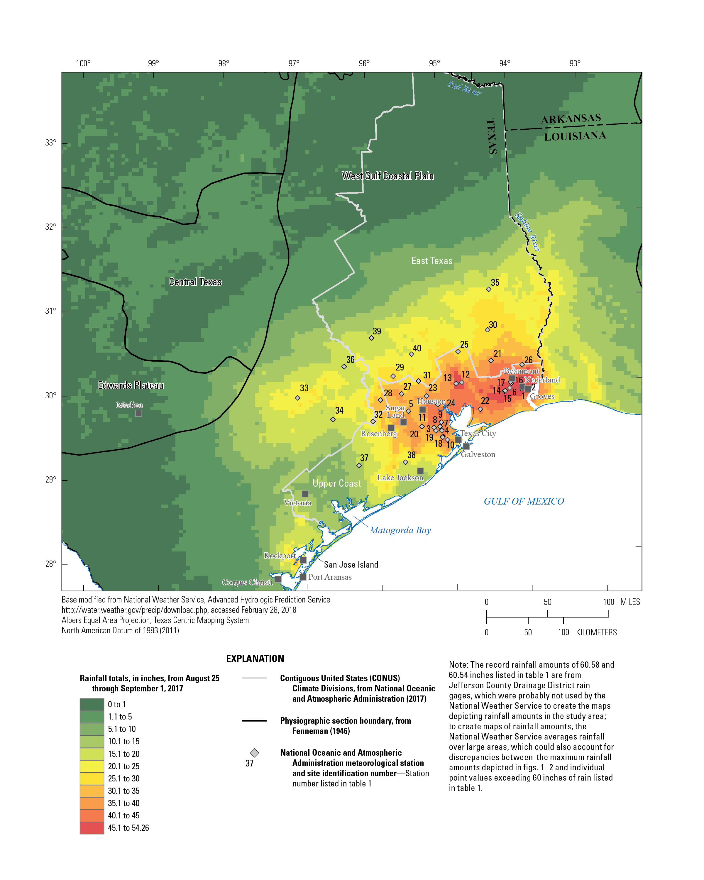 Rainfall totals in southeastern Texas and southwestern Louisiana from August 25 through September 1, 2017, resulting from Hurricane Harvey