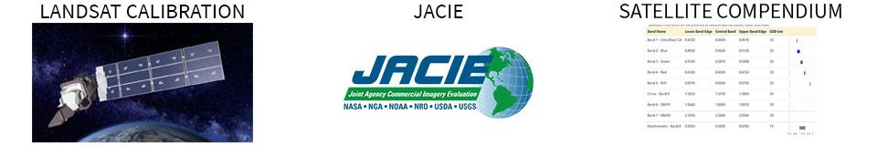 ECCOE Staff provide support to a number of USGS projects that are important in Earth Observation discovery and data characterization. Information about Landsat Calibration/Validation activities, the Joint Agency Commercial Imagery Evaluation (JACIE) team, and the Earth Observing Satellites Online Compendium can be found on this ECCOE webpage.