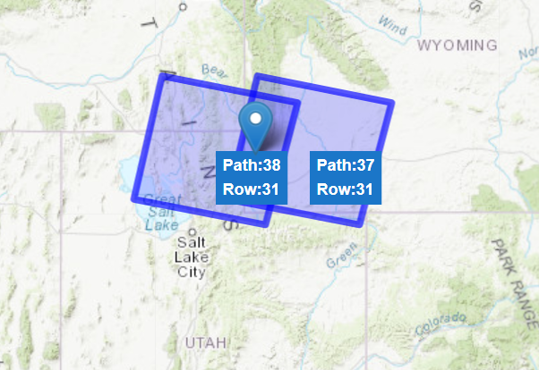 This screenshot displays results on the Convert Path/Row - Lat/Long tab on the Landsat Acquisition Tool.