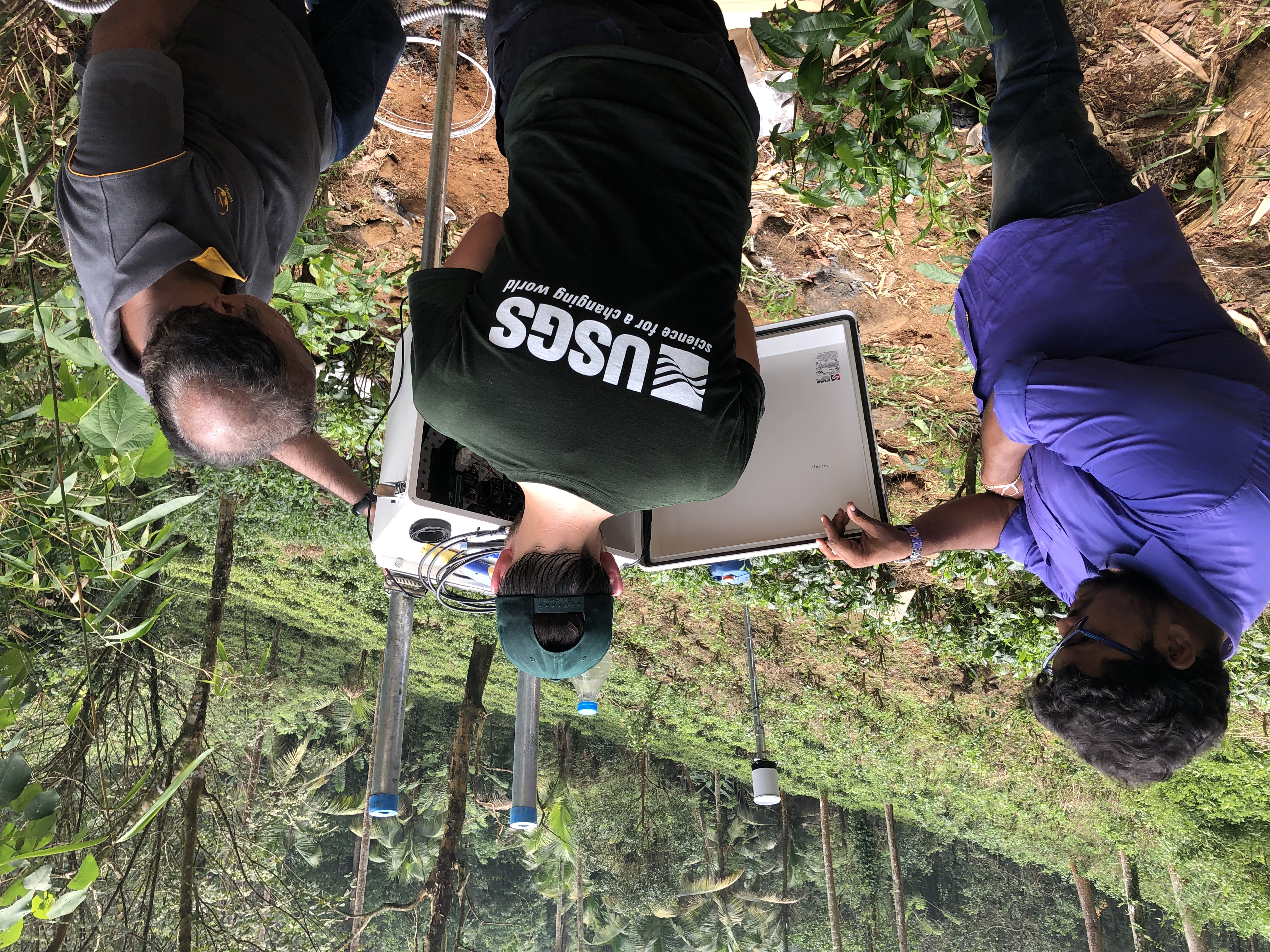 USGS scientists collaborate with Sri Lankan scientists from the National Building Research Organization on the installation of rainfall and soil moisture instrumentation on an active landslide in southwest Sri Lanka. The station provides real-time data including rainfall and soil moisture content of an active landslide. The goal of the research is to help NBRO improve their landslide forecasting rainfall thresholds.