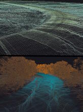 Lidar data of unpaved roads in Colorado’s Alamosa National Wildlife Refuge taken from a UAS-mounted lidar sensor (top).