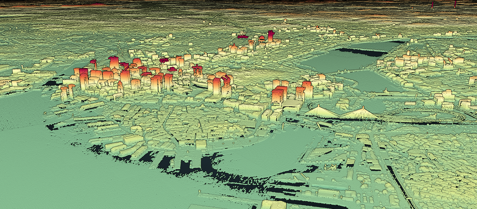 Downtown Boston captured in 3DEP lidar point cloud data.