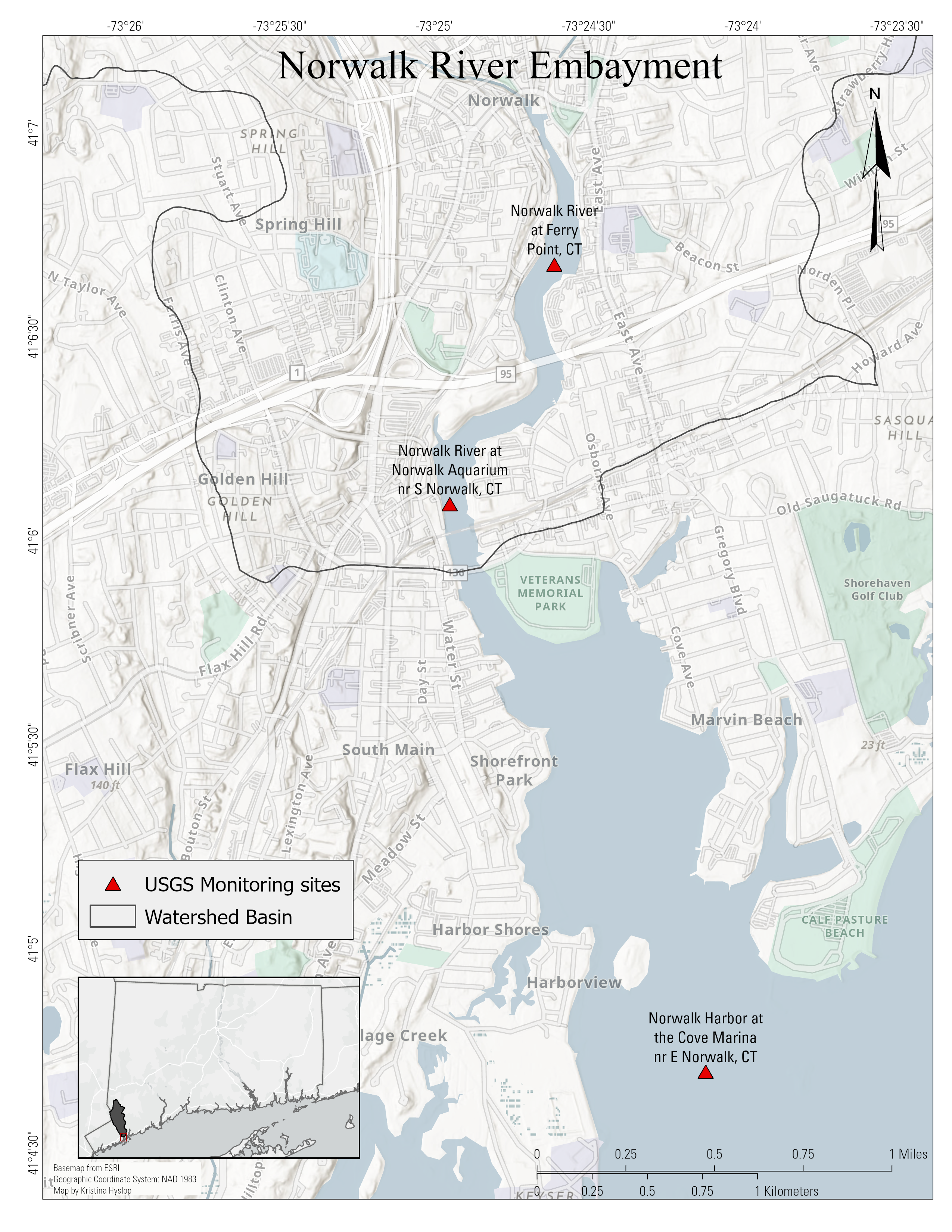 Locations of Norwalk embayment monitoring sites in Connecticut.