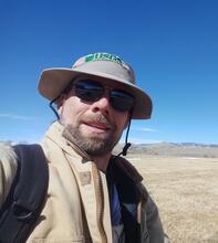 In this photo, Lucas Haffner, Hydrologic Technician, USGS, Colorado Water Science Center, Pueblo, CO, is performing a check on Water Temperature Gage in the Sagauche Valley of Colorado.