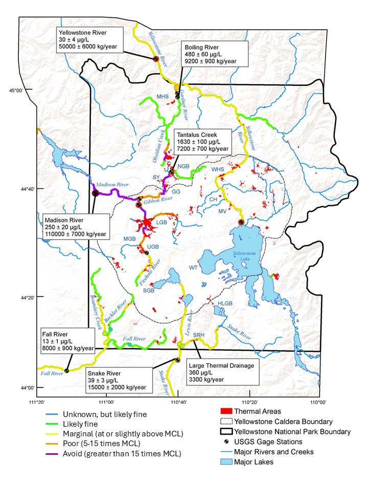 Map of arsenic concentrations in Yellowstone National Park rivers