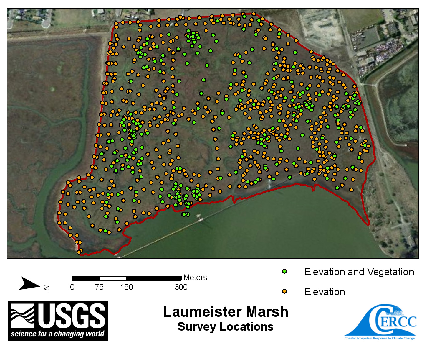 Map of elevation sampling point locations at Laumeister Marsh