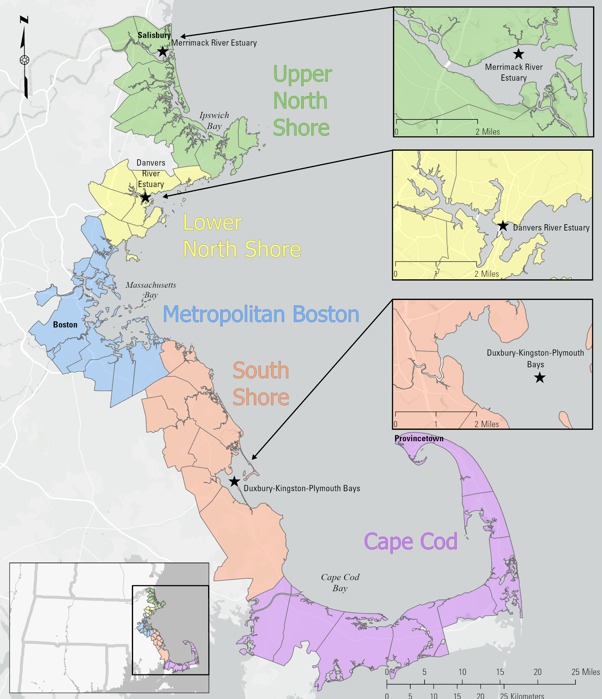 This map shows the location of the water quality monitoring sites chosen for a monitoring project meant to support the goals of the Massachusetts Bays National Estuary Partnership (MassBays) and the EPA National Estuary Program.