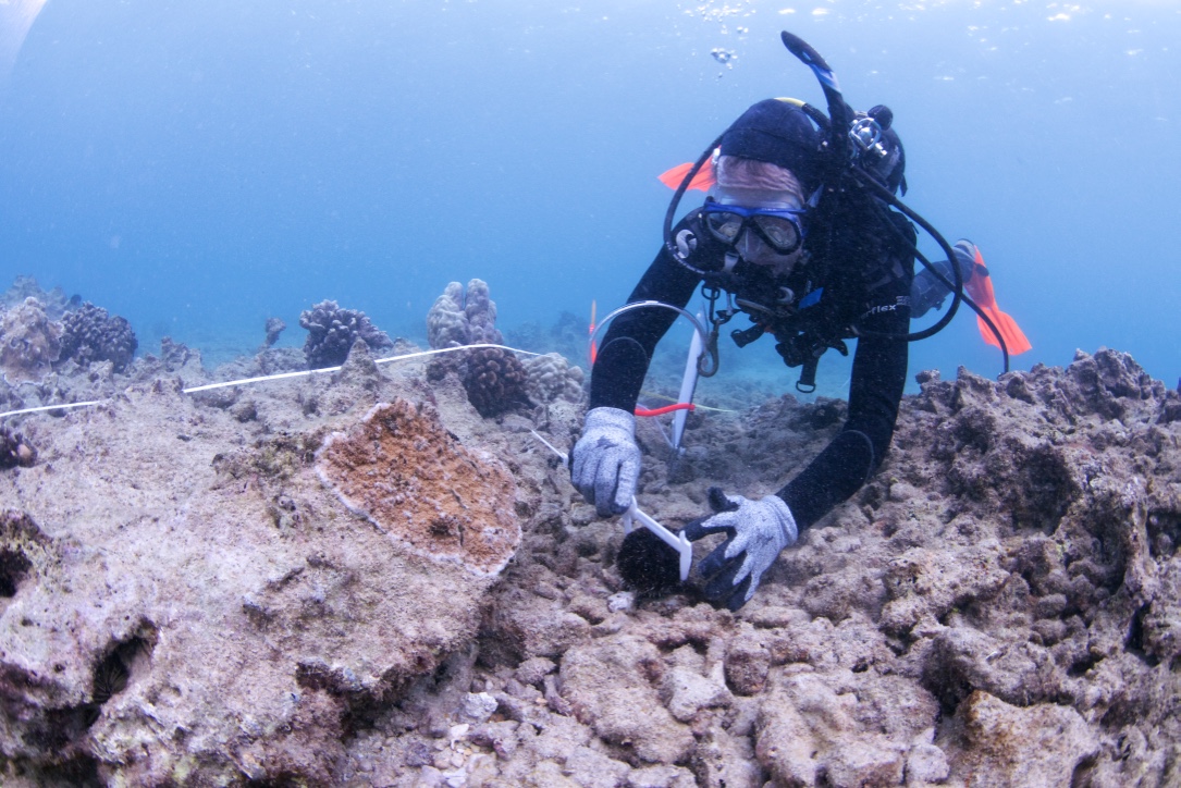 When it comes to collecting data, sometimes scientists have to look beneath the surface. Here, USGS scientists count and measure sea urchins to better understand the species' demographics off the coast of Oahu, Hawaii. This information will help managers best respond to urchin die-offs, should they occur in the future.