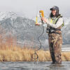 USGS hydrologic technician Aliesha Bradford measures streamflow on Warm Springs Creek near Mackay, Idaho. Photo by Ryan Moore, USGS.