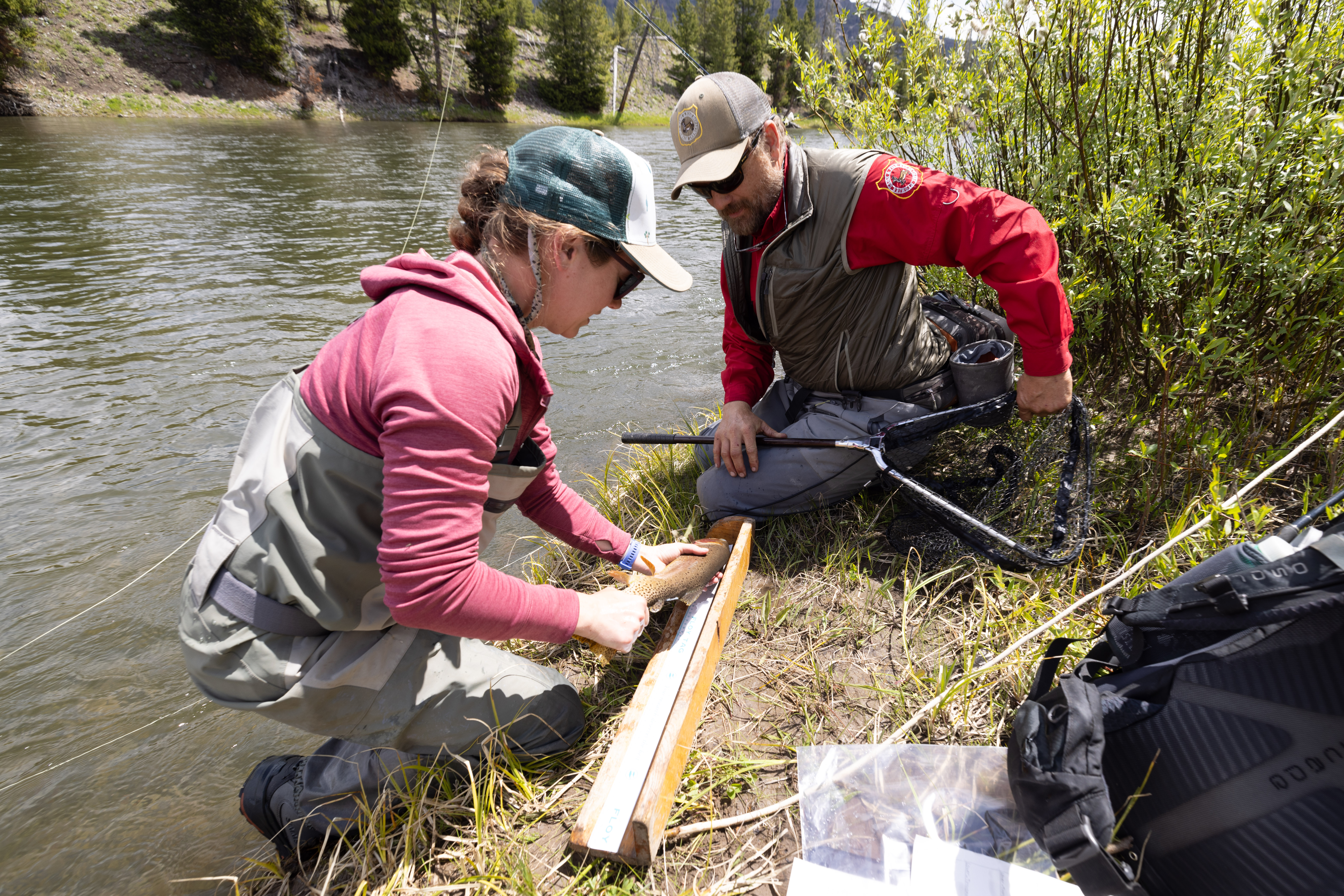 Michelle Briggs from the Montana Cooperative Fishery Research Unit shows an angler how to measure a fish.